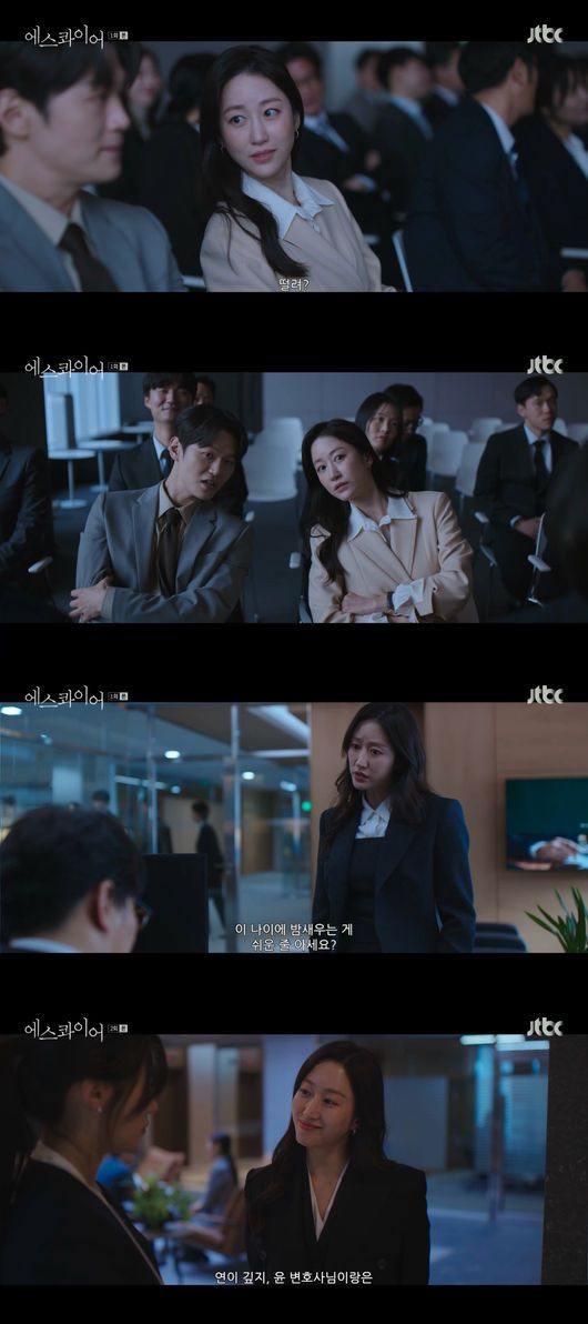 신입 변호사 인덕션에서 처음으로 모습을 드러낸 허민정은 동기 이진우(이학주 분)와 올해도 송무팀에 1지망으로 지원하는 신입이 한 명도 없을까 봐 걱정했다. 설상가상으로 송무팀 팀장 윤석훈의 지나친 솔직함은 신입들에게 반감을 샀고 이에 허민정 역시 고개를 저으며 난감해했지만, 에이스로 주목받은 신입 강효민이 송무팀을 지원하는 반전이 그려지며 본격적으로 ‘에스콰이어’의 서막이 열렸다.