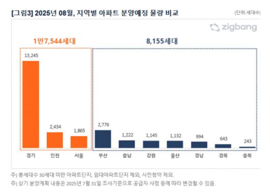 지방은 8155가구가 공급된다. △부산(2776가구) △충남(1222가구) △강원(1145가구) △울산(1132가구) △경남(994가구) △경북(643가구) △충북(243가구) 등이 공급된다. 지방 주요 단지로는 부산 서면써밋더뉴(919가구) ,강원 원주역우리린더스텔라(927가구), 울산 한화포레나울산무거(816가구), 충남 천안아이파크시티2단지(1222가구) 등이다.