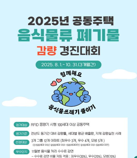 평가대상은 RFID 종량기가 설치된 100세대 이상의 공동주택 186개 단지다. 다만 오피스텔, 임대아파트, RFID를 통한 2024년 배출량 정보가 파악되지 않는 단지는 평가에서 제외된다.