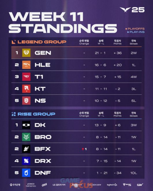 LCK는 이번 3라운드부터 양대 그룹으로 나눠 정규 시즌을 진행했다. 3라운드에서 레전드 그룹과 라이즈 그룹이 각각 10경기를 치르는 동안 두 그룹의 경기 양상은 확연하게 달랐다. 레전드 그룹은 젠지와 한화생명e스포츠, T1이 트로이카 체제를 유지하면서 kt 롤스터와 농심 레드포스가 힘을 쓰지 못하는 양상을 보였다면 라이즈 그룹은 DN 프릭스를 제외한 네 팀이 물고 물리는 장면을 연출했고 매 세트 치고 받는 난타전을 벌이면서 처절한 승부가 이어졌다.각 그룹 별로 10경기를 치르는 동안 풀 세트 접전이 벌어진 횟수부터 차이가 났다. 라이즈 그룹에서는 5번이나 3세트를 진행했지만 레전드 그룹에서는 T1 홈 그라운드에서 치러진 젠지와 T1의 대결만 풀 세트로 끝났다.