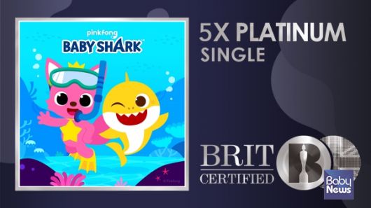 글로벌 패밀리 엔터테인먼트 기업 더핑크퐁컴퍼니(대표 김민석)는 대표곡 '핑크퐁 아기상어(Baby Shark, 이하 아기상어)’가 영국음반산업협회(BPI)로부터 5X 플래티넘(5X Platinum) 인증을 획득했다고 4일 밝혔다.