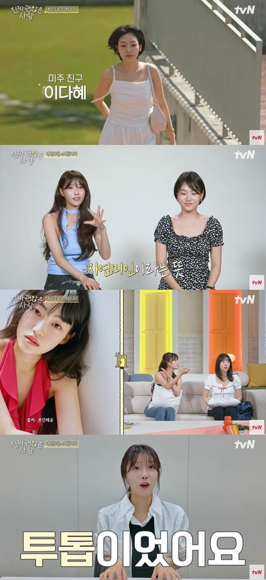 3일 첫 방송된 tvN '진짜 괜찮은 사람'에는 이미주의 친구가 등장했다.