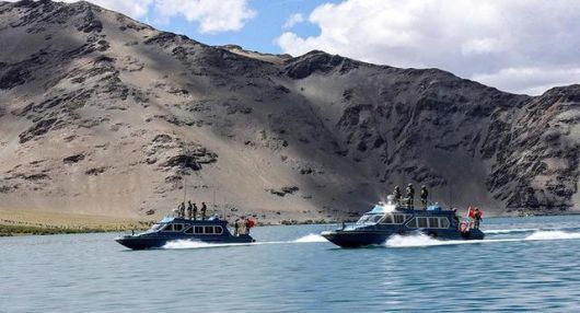 중국-인도 국경지대의 판공(반궁)호수를 순찰 중국 인민해방군의 모습. 지난 2021년 촬영된 사진/신화통신 연합뉴스 |