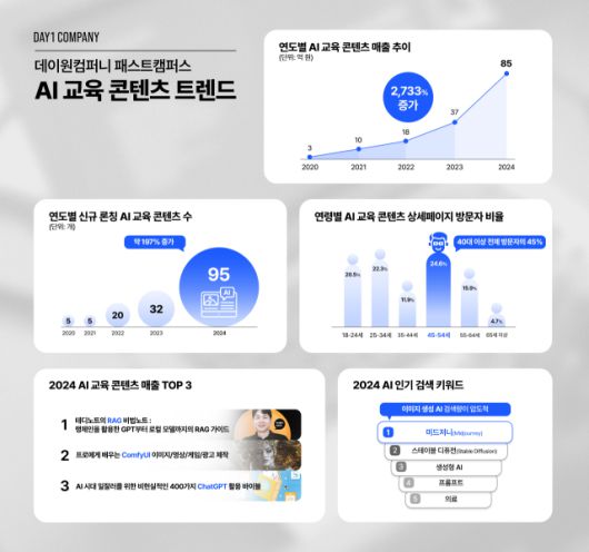 데이원컴퍼니는 B2B·B2G를 타깃으로 한 맞춤형 AI 교육 콘텐츠 개발에도 속도를 내고 있다. 데이원컴퍼니 관계자는 “현업 전문가와 협업해 실무 적용이 가능한 교육 콘텐츠를 개발하고 있으며, 기업별 수요에 맞춘 프로그램을 통해 업종 및 규모 등 조직 특성에 따른 학습 환경을 제공할 계획”이라고 밝혔다.