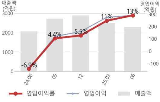 [서울=뉴스핌] 로보뉴스 = 지누스의 영업이익률이 5분기째 상승중이다. 24년 03월 -13%였던 영업이익률이 24년 06월 -6.9%로 상승한 이후 꾸준히 상승하여 이번에 13%를 기록하였다.