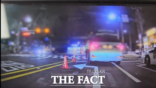 음주단속을 하는 경찰관을 매단 채 달아나는 범행 차량. /부산경찰청 |