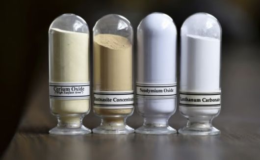 희토류 견본 사진. 왼쪽부터 산화 세륨, 바스트나사이트, 산화 네오디뮴, 탄란 란타넘./로이터=뉴스1 |