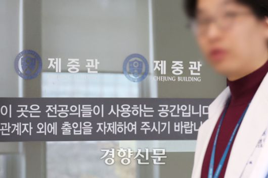 전공의 단체 자체설문조사 결과, 여성 전공의들 10명 중 8명이 임신, 육아 등으로 커리어단절을 걱정한다고 답했다. 사진은 서울의 한 대학 병원에서 의료인이 전공의 공간 앞을 지나고 있는 모습이다. 한수빈 기자 |