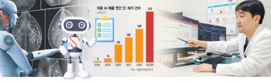 의료 AI는 X레이, 컴퓨터단층촬영(CT) 같은 영상 검사를 판독해 의료진의 진단을 보조하던 수준에서 벗어나 치료 의사 결정을 돕는 조력자 역할을 톡톡히 하고 있다. 문자·그림·영상 등 다양한 유형의 정보를 동시에 이해하고 처리할 수 있는 멀티모달 AI와 대규모언어모델(LLM)이 보편화되면서 질병을 효율적으로 관리하고 가까운 미래에 어떤 질병에 걸릴 위험이 높은지 예측하는 것도 가능하다. 식약처에 따르면 2018년 4건에 불과했던 의료 AI 제품은 2021년 102건, 2022년 149건, 2023년 213건 등으로 빠르게 늘고 있다.