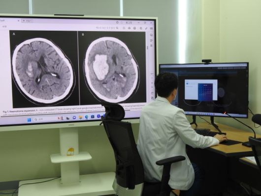 4일 의료계에 따르면 전진평 한림대춘천성심병원 신경외과 교수팀이 씨어스테크놀로지·퍼플에이아이와 함께 개발해 전국 최초로 도입한 뇌출혈 원격협진 AI 솔루션이 ‘골든타임’ 사수의 첨병 역할을 하고 있다.