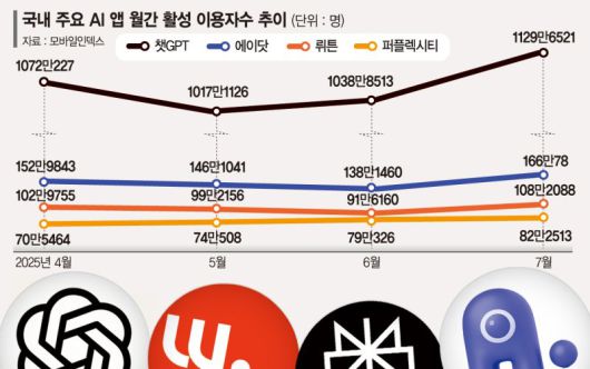 미국에 이어 국내에서도 폭발적 성장세를 이어온 챗GPT가 또다시 월간 활성 이용자수(MAU) 신기록을 썼다. SK텔레콤, 뤼튼테크놀로지스 등의 AI서비스들이 분전하고 있지만 챗GPT의 성장세에는 못미친다. 정부가 토종 기업들을 빠르게 키워 대비해야 한다는 목소리가 커지고 있다.