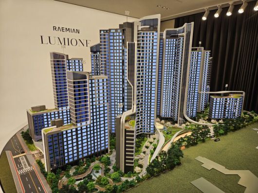 29일 서울 강남구 일원동에 위치한 삼성물산의 개포우성7차 재건축 사업 홍보관에 ‘래미안 루미원’ 모형이 전시되어 있다. 이지혜 기자 |