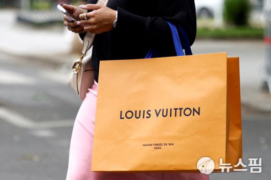 지난 4월 17일(현지 시간) 프랑스 파리에서 한 여성이 루이비통 쇼핑백을 들고 걸어가고 있다. [사진=로이터 뉴스핌] |