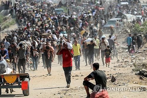 구호품을 받아 돌아가는 팔레스타인 주민들 |