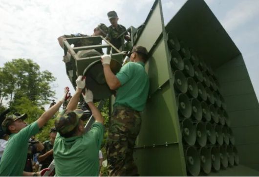 2004년 6월 중부전선에서 고정식 대북 확성기를 철거하는 모습. 합동참모본부 제공 |