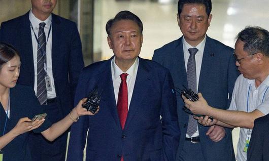 윤석열 전 대통령이 지난7월 9일 서울 서초구 서울중앙지법에서 열린 직권남용 등 혐의 영장실질심사(구속 전 피의자 심문)를 마친 뒤 대기 장소인 서울구치소로 이동하기 위해 법원을 나서고 있다. 뉴시스 |