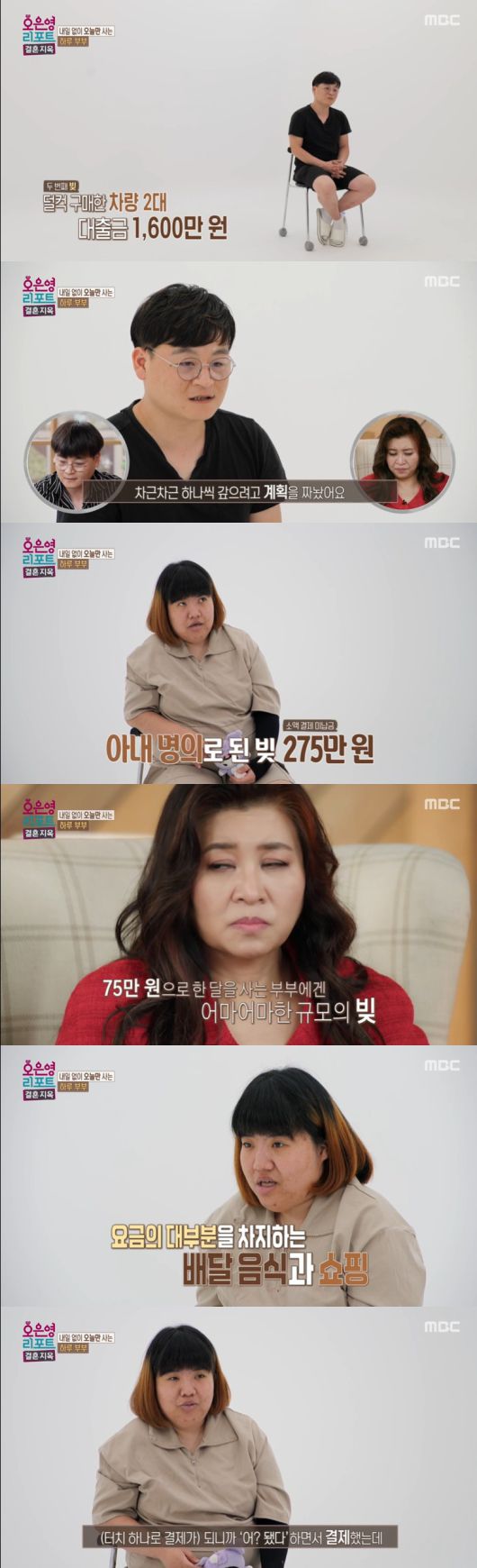 이어 아내는 "저는 (휴대 전화 소액 결제 미납금) 빚만 한 275만 원"이라며 요금 대부분은 배달 음식과 쇼핑이 차지한다고 전했다.