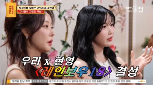 지난 4일 오후 8시 30분에 방송된 KBS Joy 예능 프로그램 '무엇이든 물어보살'(이하 '물어보살')에서는 유닛 레인보우18로 돌아온 고우리, 조현영이 보살즈(이수근, 서장훈)를 찾아왔다.