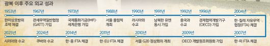 해방 직후만 해도 생존 외교에 절박하게 나서야 했던 한국은 어느덧 주요 20개국(G20), 경제협력개발기구(OECD) 등 주요 다자무대에서 규범을 제시하는 국가로 부상했다. 국제사회에서 대한민국의 위상은 비약적으로 격상됐다. 지난 80년은 한국 외교와 국력 신장의 역사로 평가된다.