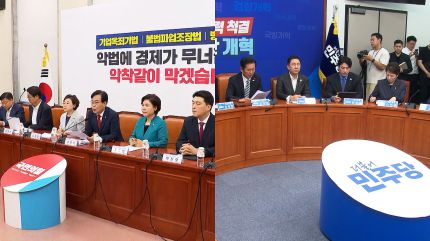 [정청래/민주당 대표 : 이 시간 이후로 이 문제에 대해서는 비공개 (회의)에서 충분히 토론할 테니 우리 의원님들께서는 공개적인 입장 표명을 자제해 주시기 바라고.]