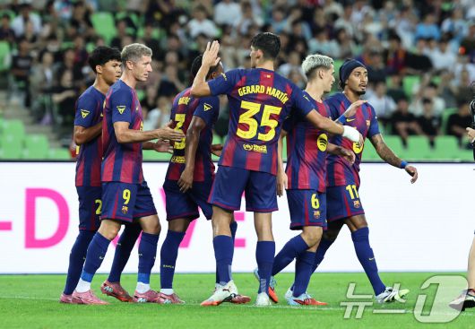 지난달 31일 FC서울을 상대로 7대3 승리를 거둔 바르셀로나는 이날 대구를 상대로도 최정예에 가까운 선발 라인업을 꾸렸다. ‘제2의 메시’라 불리는 2007년생 ‘신성’ 라민 야말(스페인), 로베르트 레반도프스키(폴란드), 하피냐(브라질)로 구성된 최강 공격 삼각 편대가 출격했다. 미드필더 가비(스페인), 프렝키 더 용(네덜란드), 수비수 로날드 아라우호(우루과이) 등 스타 플레이어들이 총출동했다.