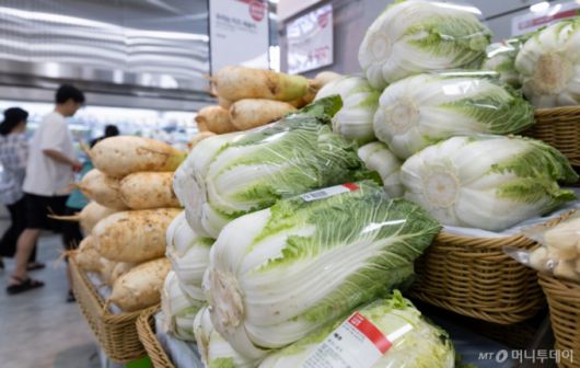 (서울=뉴스1) 이승배 기자 = 최근 폭염 여파로 일부 농산물 가격이 크게 오르고 있다. 생육 부진과 수요 증가까지 맞물리면서 일부 품목은 1년 전과 비교해 40% 이상 올랐다. 3일 한국농수산식품유통공사(aT)에 따르면 수박 평균 소매가격은 지난 1일 기준 1개에 3만 3337원으로 1년 전과 비교하면 17.6% 올랐다. 토마토 소매가격은 1kg에 6716원으로 1년 전보다 42.6% 비싸고 평년보다 33.2% 높다. 여름철 가격 변동 폭이 큰 배추의 경우 1개 소매가격이 6114원으로 6000원을 넘었다. 1년 전, 평년과 비교해 각각 11.2%, 11.3% 올랐다. 3일 서울 시내의 한 대형마트에 배추가 진열돼 있다. 2025.8.3/뉴스1 Copyright (C) 뉴스1. All rights reserved. 무단 전재 및 재배포, AI학습 이용 금지. /사진=(서울=뉴스1) 이승배 기자 |