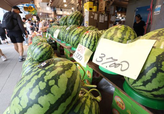3일 서울 동대문구 청량리종합시장에 수박이 진열돼 있다. 연합뉴스 |