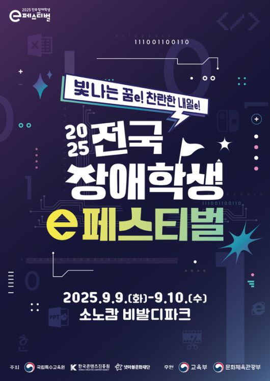 넷마블문화재단이 국립특수교육원, 한국콘텐츠진흥원과 공동 주최하고, 교육부와 문화체육관광부가 후원하는이번 장애학생 e페스티벌은 9월 9일부터 10일까지 이틀간 홍천 소노캄 비발디파크서 치러질 예정이다.
