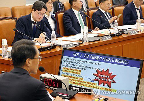 (서울=연합뉴스) 박동주 기자 = 5일 서울 여의도 국회에서 열린 행정안전위원회 전체회의에서 유재성 경찰청장 직무대행이 인천 송도에서 발생한 사제총기 살인 사건 관련 의원 질의를 듣고 있다. 2025.8.5