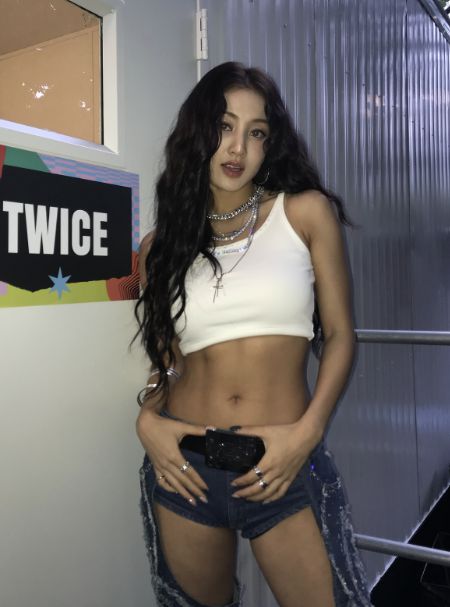공개된 사진에는 지효가 롤라팔루자 시카고 공연 대기실 앞에서 포즈를 취하고 있는 모습이 담겼다. 특히 크롭 티셔츠에 드러난 운동으로 다져진 듯한 복근과 잘록한 허리가 시선을 사로잡았다.