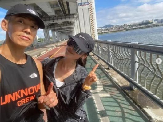 가수 션은 지난 5일 개인 SNS를 통해 다니엘과 함께한 러닝 인증샷을 공개했다. 션은 "언노운 크루 모닝런. 하늘은 맑고 시원한 바람까지, 러닝 하기 좋은 날이었다"는 글과 함께 올라온 사진 속에는 다니엘과 션이 한강에서 러닝을 마친 후 카메라를 향해 손가락으로 숫자 1을 그리며 환하게 웃고 있는 모습이 담겼다.