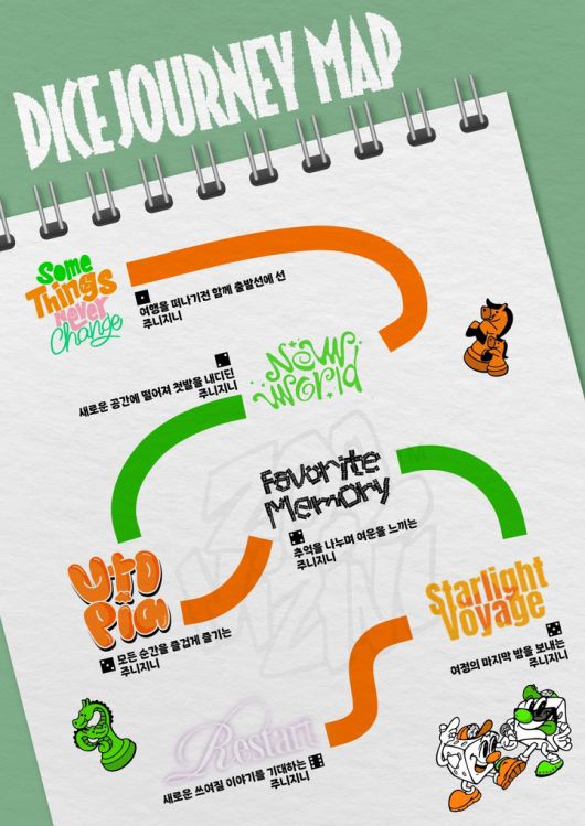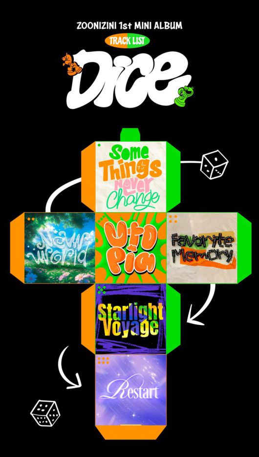 또한 'DICE'는 트랙들이 하나의 이야기로 이어진다. 출발선을 지나 새로운 세상에 발을 내딛고, 기억과 감정을 되짚으며 다시금 미래를 향해 나아가는 여정을 음악으로 풀어냈다. 주사위를 던지듯 예측할 수 없는 미래에서도 지속되는 주니지니의 우정을 담은 스토리텔링을 선보일 예정이다.