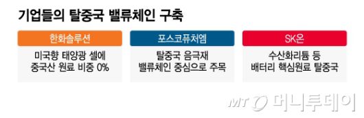 업계 관계자는 "미국이 주도하는 시장의 룰에 발맞추기 위한 기업들의 움직임은 지속될 것"이라며 "원료·소재 분야에서 탈중국을 한다는 건 분명 힘든 일이지만, 또 반드시 달성해야 할 목표가 되고 있다"고 말했다.