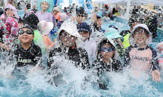 폭염이 이어진 지난 3일 오후 서울 종로구 광화문광장에 마련된 '2025 서울썸머비치' 물놀이장에서 어린이들이 물놀이를 즐기며 더위를 식히고 있다. 뉴시스 |