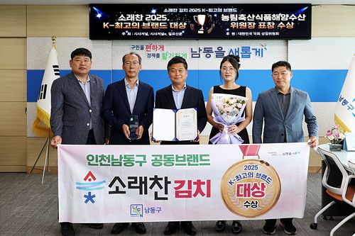 인천시 남동구는 김치 공동브랜드인 '소래찬'이 2025 소비자선정 최고의 브랜드 대상에서 K-푸드 부문 대상을 수상했다고 5일 전했다.