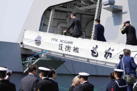 지난 4월 8일 마르크 뤼터 나토 사무총장이 가나가와현 요코스카에 있는 해상 자위대 기지를 방문해 호위함에 승선을 하고 있다./AFPBBNews=뉴스1 |