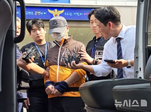 [인천=뉴시스] 김동영 기자 = 30일 오전 인천 남동구 논현경찰서에서 사제총기로 아들을 살해한 혐의 등으로 경찰에 구속된 60대 남성이 검찰에 송치되고 있다. 2025.07.30. dy0121@newsis.com |