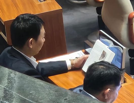 밤과 새벽 사이엔 20~30명 정도만 자리한 채 고요한 토론이 이어졌다. 신 의원이 발언하는 동안 민주당 김용민·박상혁·김기표 의원은 책을 읽었다. 박 의원이 읽고 있는 책은 김훈 소설가의 산문집『허송세월』이었다. 이 의원이 바통을 이어받자 국민의힘 의원들이 자리에 앉아 조는 모습도 카메라에 포착됐다. 이진숙 방송통신위원장은 내내 맨 뒷자리에 앉아 토론을 지켜봤다.