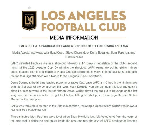 SON '오피셜'도 안 떴는데? LAFC, 일 처리 진짜 빠르네...韓 취재진에게 보도 자료 전달 시작→경기 리뷰 등 포함
