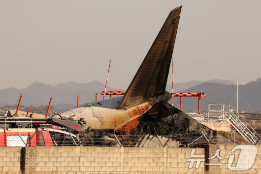 2024년 12월 29일 전남 무안국제공항  제주항공 여객기 참사 현장. 당시 총 181명을 태운 태국발 제주항공 7C2216편 항공기가 무안공항 착륙을 시도하던 중 활주로 외벽에 부딪혀 폭발해 승무원 2명을 제외한 179명이 사망했다. 2024.12.29/뉴스1 ⓒ News1 김태성 기자