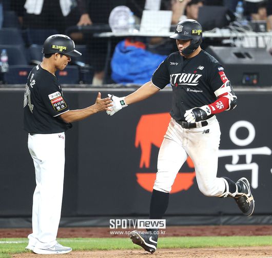 8회초에만 5점을 뽑았다. 1사 후 황재균의 좌월 솔로포가 터졌고, 계속된 1사 만루에서 허경민이 동점 희생플라이를 때렸다. 2사 만루에서는 강백호가 오른쪽 담장을 때리는 적시타로 주자 3명을 모두 불러들였다.