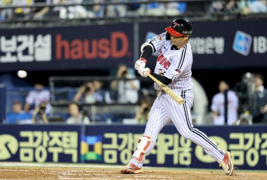 문보경, ‘역전 쓰리런 홈런’ - 5일 서울 송파구 잠실야구장에서 열린 2025 KBO리그 두산 베어스와 LG 트윈스의 경기, 7회말 2사 1,2루 LG 문보경이 역전 3점 홈런을 치고 있다. 2025.08.05. 뉴시스 |