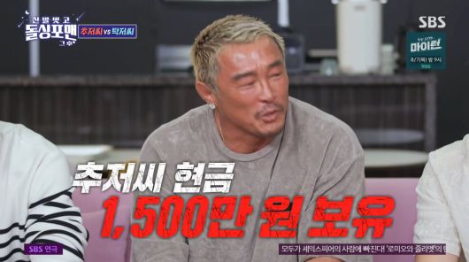 이에 추성훈은 "현금 1500만원 보유 중"이라며 남다른 스케일을 뽐냈다. 엄청난 금액에 다들 믿지 못하자 김준호는 "전에 오사카 여행을 갔는데, 엔화랑 달러 섞어서 3000만원 가져왔더라. 더 놀라운 건 잘 때 그냥 던져두고 자더라"고 전했다. 이에 탁재훈은 "지갑에 위치추적기 있을 것"이라고 농담을 던졌다.
