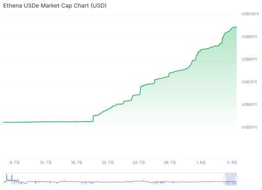 최근 1개월 Ethena USDe 시가총액 추이 (출처=코인게코) |