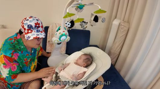 이날 이용식은 해당 영상 기준 78일이 된 손녀 이엘의 앞에 앉아 "아침에 내가 우유 먹인 거 기억나니? 그래가지고 네가 방구를"이라며 말을 건넸다.