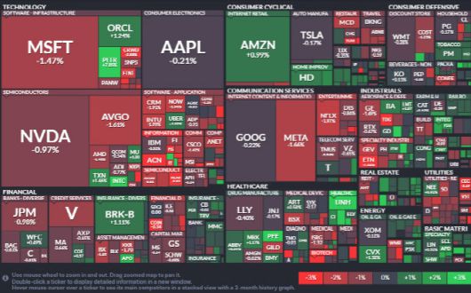팔란티어 주가는 방산 기술 기업으로서 사상 처음으로 매출 10억 달러를 돌파했다고 밝히며 7.85% 급등했다. 건설·중장비 제조업체 캐터필러는 시장 예상치를 밑도는 실적을 발표했지만 0.12% 소폭 상승했다.