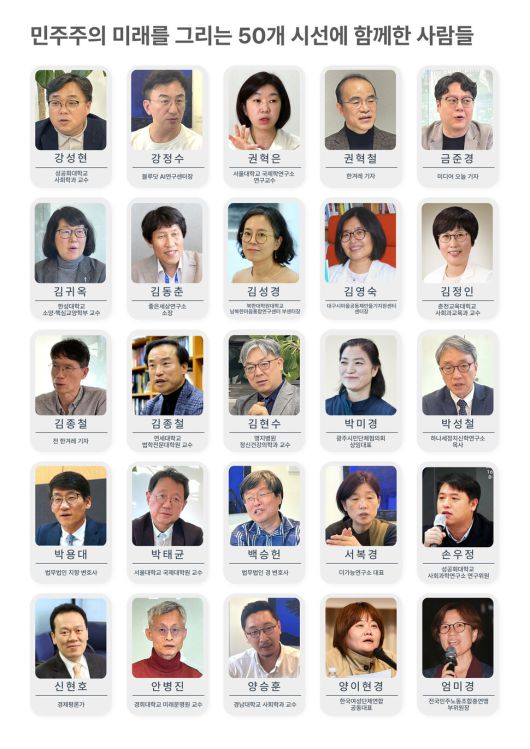 한겨레는 ‘민주주의의 미래를 그리는 50개의 시선’이라는 제목으로 주요 내용을 순차 공개한다. 인터뷰 전체 내용은 별도 보고서로 발간한다.