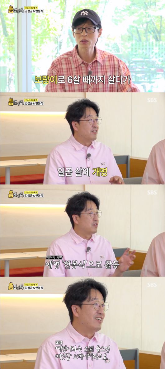 [OSEN=박근희 기자] '틈만 나면,’ 배우 현봉식이 개명 전 이름이 '보람'이었다고 밝혀 모두를 놀라게 했다.