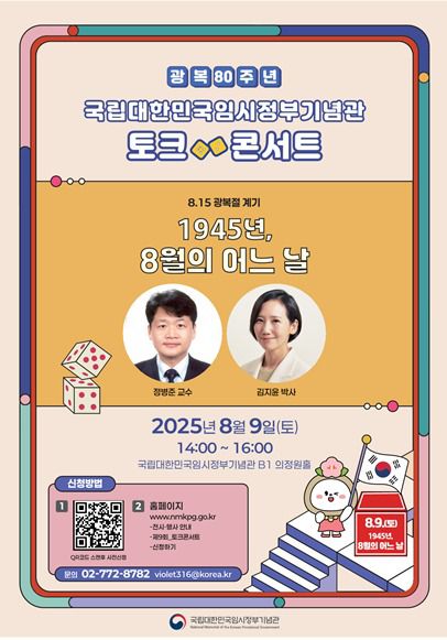 (서울=뉴스1) 허고운 기자 = 국가보훈부는 오는 9일 오후 서울 서대문구 국립대한민국임시정부기념관에서 '1945년 8월의 어느 날'을 주제로 토크 콘서트를 개최한다고 6일 밝혔다.