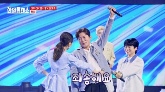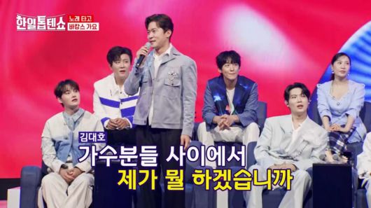 ‘정수라 히트곡 대결’에서는 ‘한일톱텐쇼’에 첫 출격한 김대호가 별사랑, 마이진과 팀을 이뤄 김준수-최수호와 맞대결했다. 별사랑은 “폐 끼치기 싫다고 연습 시간 1시간 전부터 와서 연습을 하고 있더라”며 김대호의 열정을 대변했고, 김대호 역시 “많은 분들이 즐겨보시는데 망치면 민폐일까 봐 최선을 다했다”고 전해 현장을 훈훈하게 했다. 김대호는 “호랑이 기운 몰고 갑니다”라고 파이팅을 외친 후 댄스와 함께 ‘이제는’ 무대를 열며 기세 높였지만, 첫 소절에서 바로 음이탈을 일으켜 모두를 당황하게 했다.